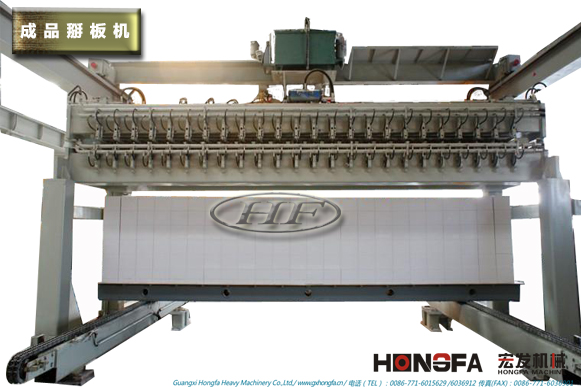 ? 坯體在切割后,翻轉(zhuǎn)臺(tái)把坯體翻轉(zhuǎn)90度,以去除底部廢料,從而提高廢品的利用率。
